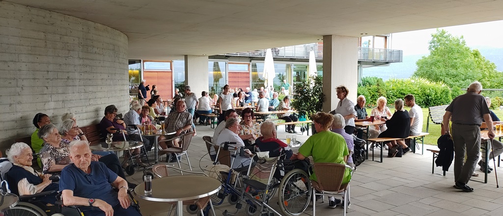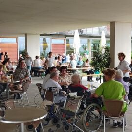 Seit 2012 findet das erste Gartenkonzert des Sommers immer im Haus für Senioren statt. Die schöne Kulisse des Innenhofes im Seniorenheim eignet sich dafür bestens. Unsere BewohnerInnen und Bewohner freuen sich jedes Jahr aufs Neue, wenn die Musiker zu uns ins Haus kommen. Dieser Abend ist für sie immer ein besonderes Highlight.