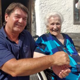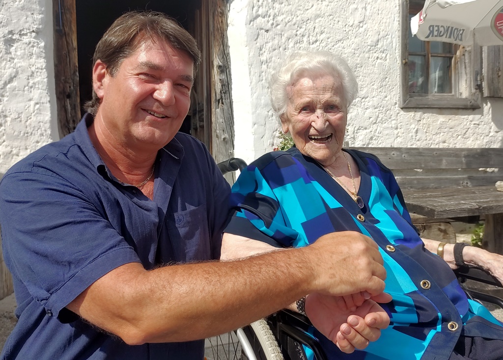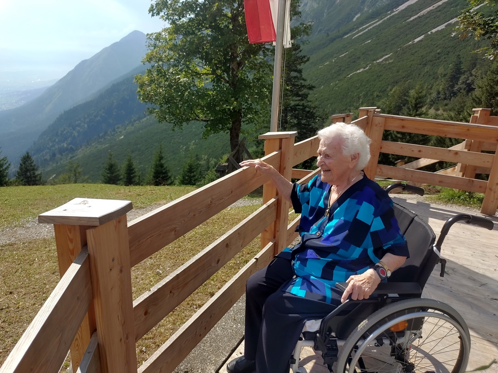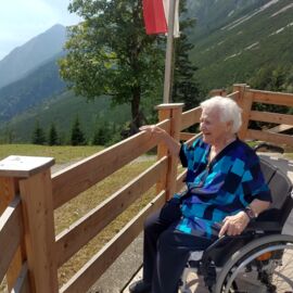 Im August ging für Frau Ernestine Faschingleitner ein Herzenswunsch in Erfüllung: Sie besuchte die Walderalm und genoss den herrlichen Blick von der Hinterhornalm auf das Inntal.