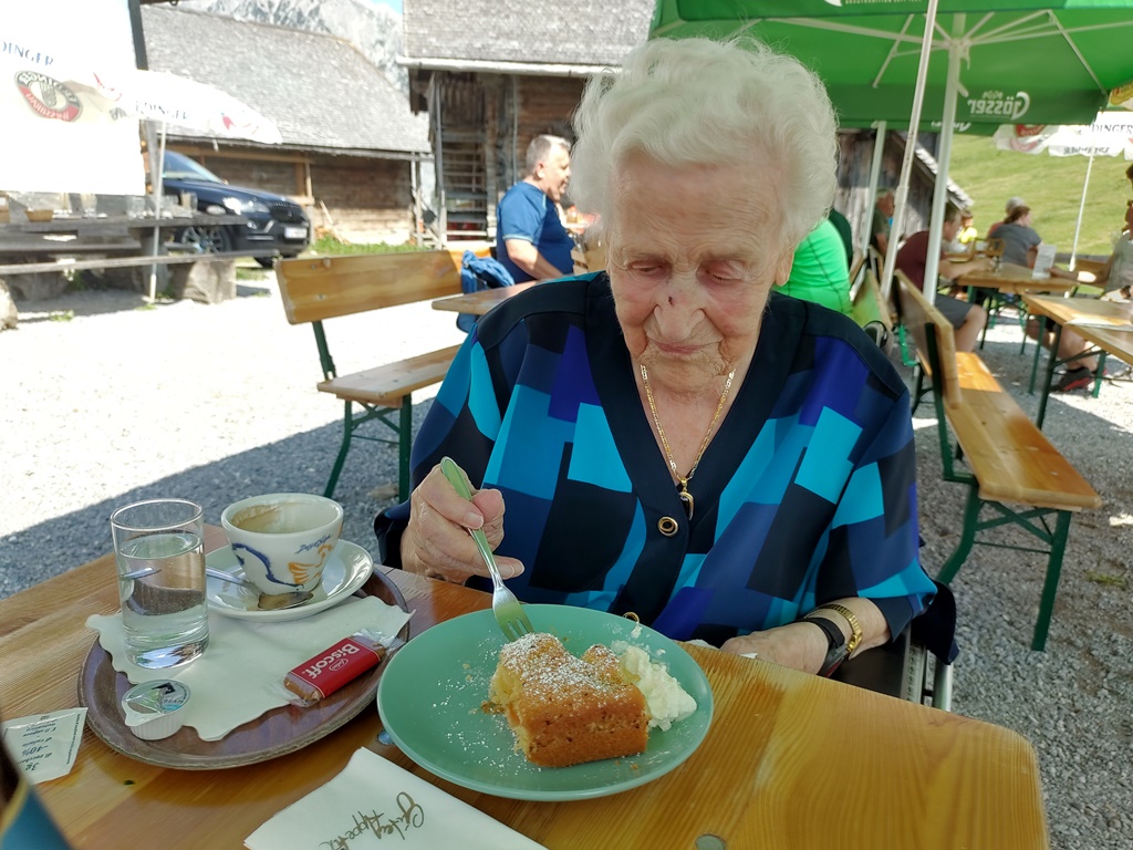 Trotz ihres hohen Alters ist Frau Faschingleitner noch sehr agil und lebensfroh. Sie genoss nicht nur die Gesellschaft ihrer Familie, sondern auch den köstlichen Kuchen auf der Walderalm. Sie lachte viel und scherzte ausgelassen. Ein besonderes Highlight war der Zwischenstopp auf der Hinterhornalm, der mit einem atemberaubenden Blick auf das Inntal für Begeisterung sorgte.