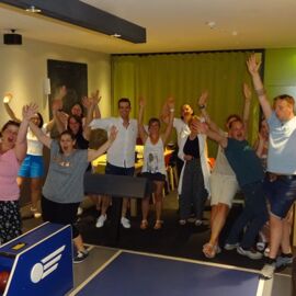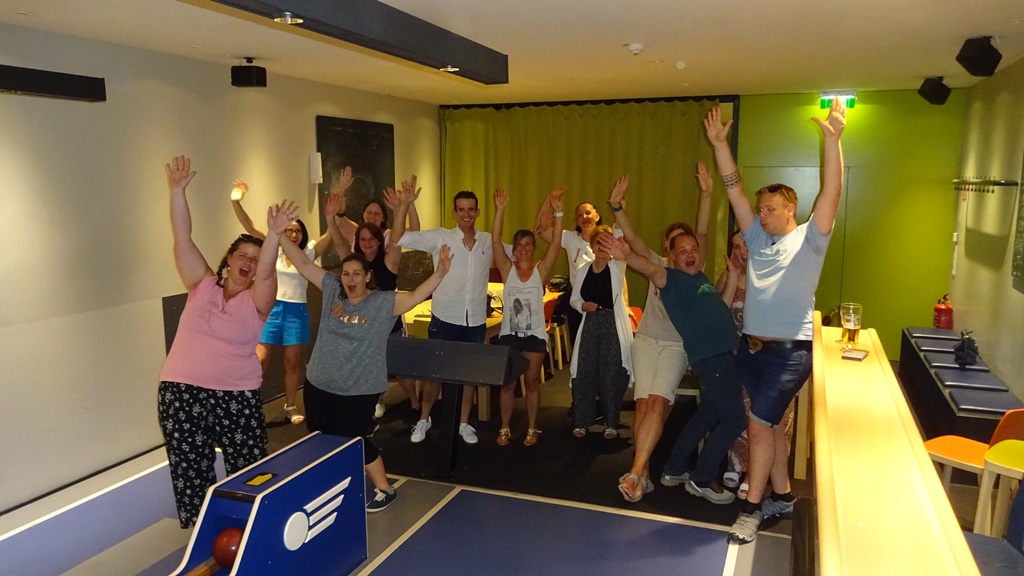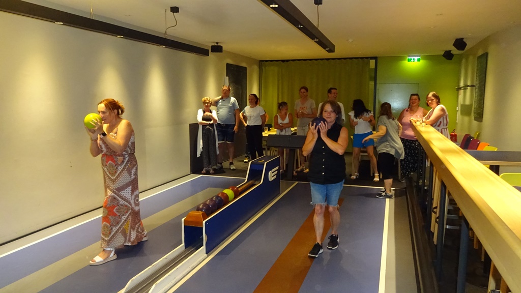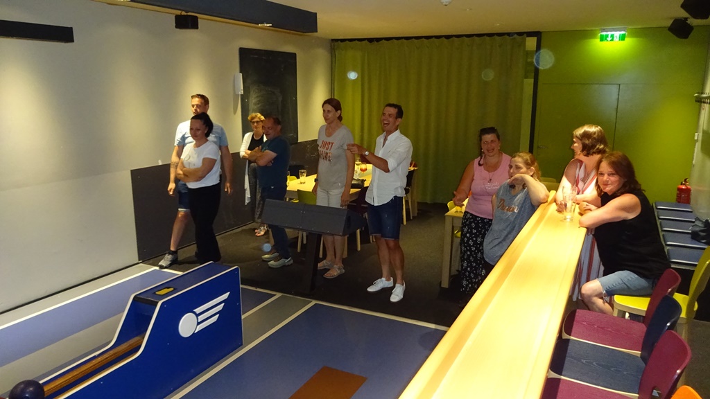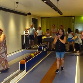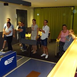 Neben den kulinarischen Genüssen kam auch die sportliche Betätigung nicht zu kurz. Viel Spaß bereitete den MitarbeiterInnen das Kegeln. Von Runde zu Runde stieg der Kampfgeist. Jeder wollte das gegnerische Team schlagen. Auch der Spaß kam nicht zu kurz. Unter dem begeisterten Beifall der KollegInnen wurden die fallenden Kegel gefeiert, während das Miteinander für Spaß und Teamgeist sorgte. Zu späterer Stunde legten einige ehrgeizige Mitarbeiterinnen sogar noch eine Extrarunde ein.