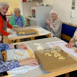 Unsere BewohnerInnen haben sich aktiv an den Vorbereitungen für den Palmsonntag beteiligt. Das Backen der Palmbrezeln und das Binden von Palmbuschen sind schöne Traditionen, die das Miteinander stärken und die Vorfreude auf das Osterfest steigern. Die selbst gebundenen Palmbuschen wurden von Pfarrer Josef Schmölzer in unserer Kapelle geweiht.