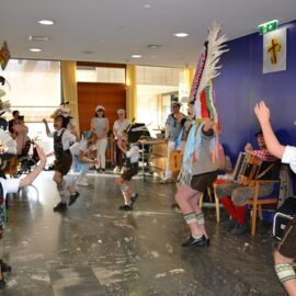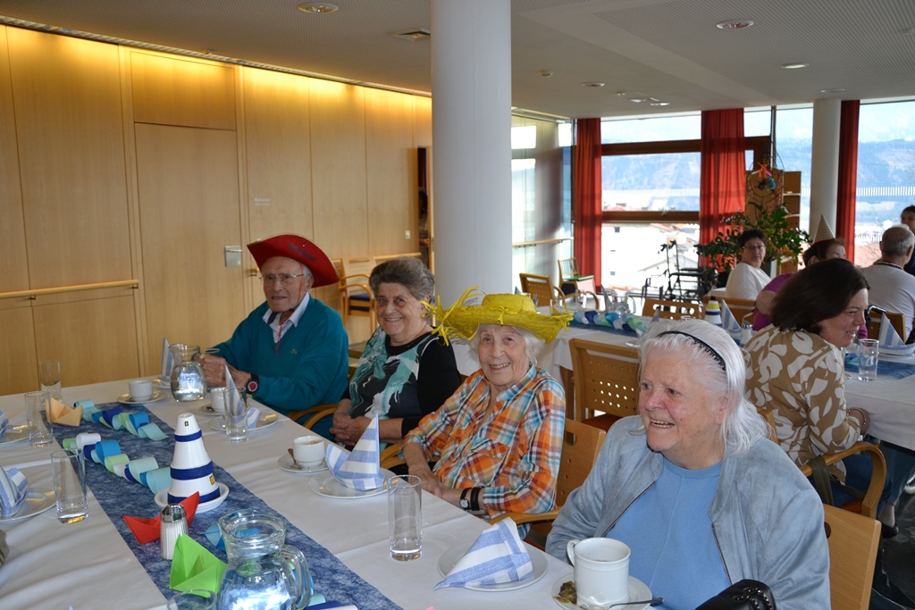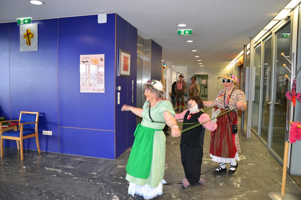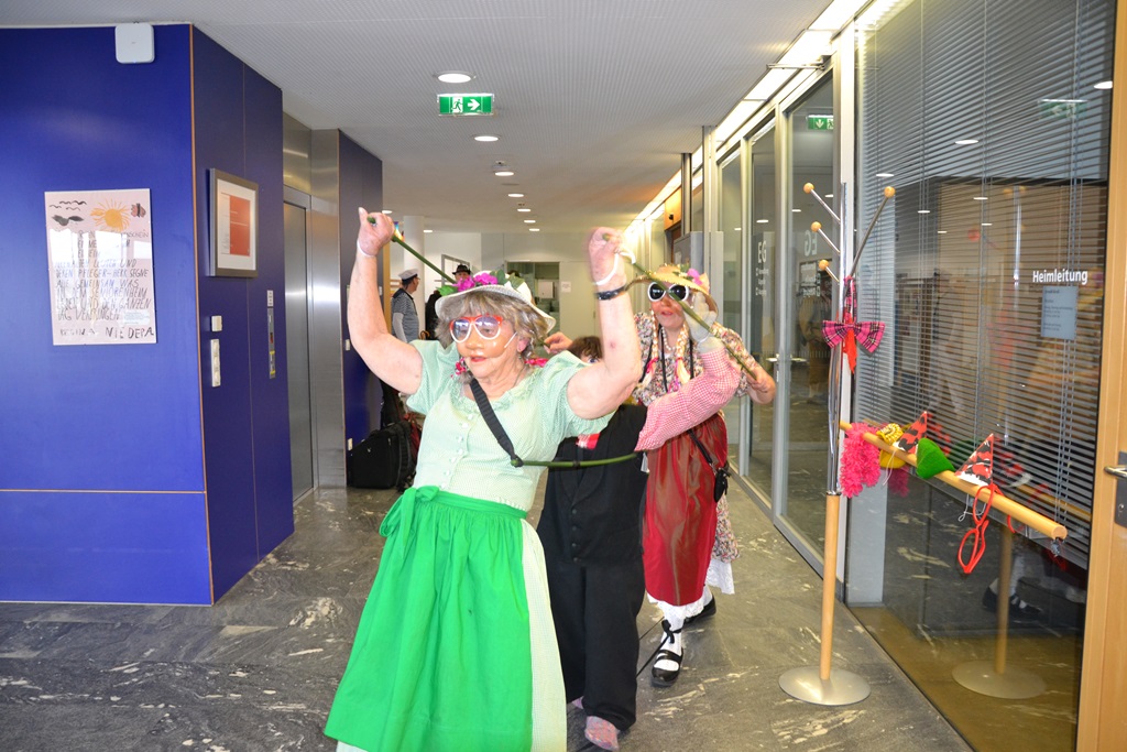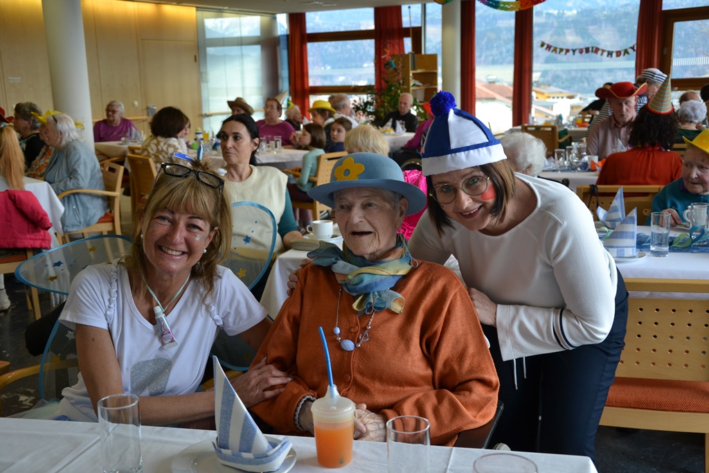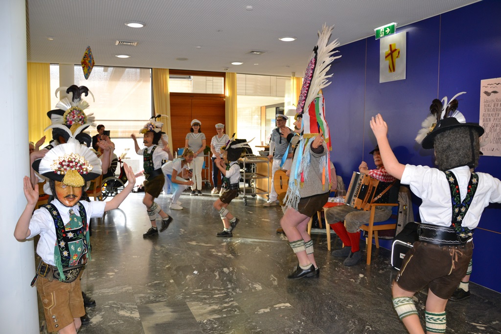Die Feier war geprägt vom Tanzen und Feiern. Das Duo Gamper und Holzhammer sorgte für gute Stimmung und animierte unsere Bewohnerinnen und Bewohner zum Schunkeln und Mitsingen. Zwei Angehörige, die sich die „Kassn-Dirndln“ nennen, boten eine herrliche Einlage, die viel beklatscht wurde. Gegen Ende der Feier wurde spontan eine Polonaise gemacht.
